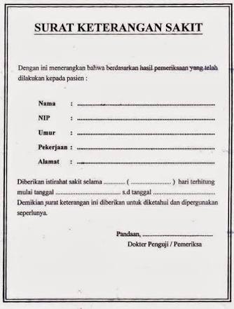 Apakah kita hanya memberi surat keterangan berobat saja? Nah, pada saat itulah anda bisa meminta surat keterangan dari dokter ataupun petugas medis lainnya. Nah, dengan adanya surat keterangan sakit dari dokter maka pihak perusahaan tentu akan memakluminya dan membagikan izin tak masuk kerja di karenakan sakit. Surat keterangan dokter (physician form). Surat keterangan sakit memiliki format .