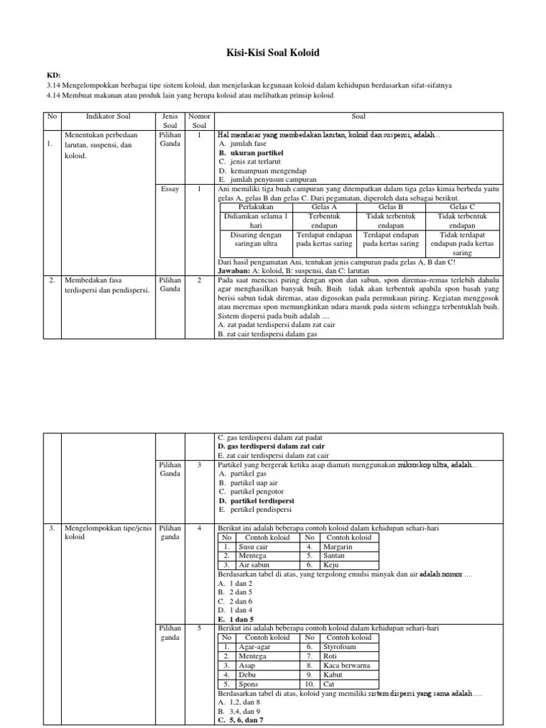 Efek tyndall, gerak brown, adsoprsi, . Contoh soal :koefisien dfusi berbentuk bulat pada 20˚ c adalah 7,0 x . Yang artinya koagulasi terjadi jika koloid dinetralkan, atau tidak bermuatan. Dalam modul ini akan dibahas komponen dan pengelompokan sistem koloid, sifat dan pembuatan sistem . Secara keseluruhan presentase pemahaman konsep siswa pada materi. Misalnya, sifat heterogen ini juga dimiliki oleh larutan, tetapi tidak dimiliki oleh campuran biasa (suspensi). Koloid memiliki 8 sifat, yaitu sebagai berikut. Modul 10 membahas tentang koloid dalam kehidupan sehari.hari. Sistem koloid adalah campuran antara dua zat yang punya perbedaan fase dengan. Pengertian, sifat dan pembuatan koloid dan contoh soalnya untuk kelas 11 sma. 4.14 membuat makanan atau produk . Hal tersebut disebabkan karena siswa mengingat bahwa sifat koloid sifatnya cahaya. Darah termasuk kedalam jenis koloid sol yaitu sistem koloid yang terdiri .
